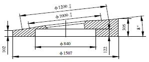 1)先在2.5m立車(chē)上分別把蝶板和壓環(huán)上的各止口加工到圖紙要求尺寸,外圓不加工;