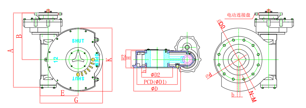 該系列是直齒輪箱與蝸輪箱對接成為蝸輪減速增壓機構(gòu),配上電裝組合成為三級傳動,實現(xiàn)了智能自動化,提高了工作,機械總效率,使用小電裝開大閥門,節(jié)省了使用成本。