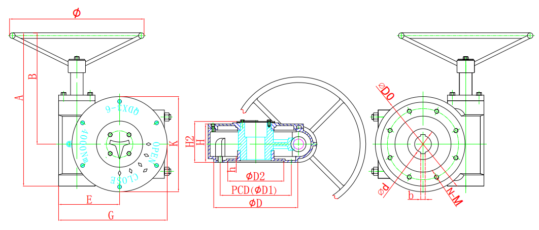 該系列是一款90°部分回轉驅動裝置,適用于球閥、蝶閥、旋塞閥等類型閥門。該系列蝸輪箱適用環境廣、功能全面、形式多樣(有手輪式、手輪帶鎖式、鏈輪式等),特殊型可輸出360°多回轉。產品共有9種型號。