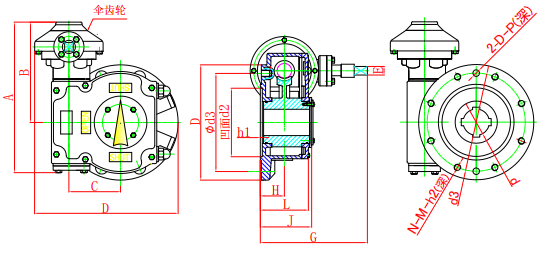 輸入小力矩,開動大閥門,使操作人員省力,每種型號提供多個傳動比,能更好的匹配不同規格的閥門。